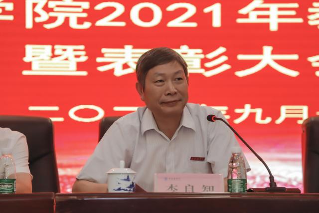 他指出,今年是中国共产党成立100周年,习近平总书记明确提出了坚持真理、坚守理想,践行初心、担当使命,不怕牺牲、英勇斗争,对党忠诚、不负人民的伟大“建党精神”。作为高校教育工作者,要继承好、发扬好“建党精神”,将伟大“建党精神”落实到立德树人根本任务中,落实到坚持以“学生为中心、以教师为中心”的目标任务中,办人民满意大学。