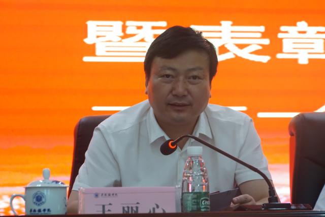 王丽心宣读《关于表彰2020—2021学年“三育人”先进集体和先进工作者的决定》《关于表彰2020年度优秀辅导员的决定》《关于授予程桑等同志“最美家庭”“景院好人”荣誉称号的表彰决定》。