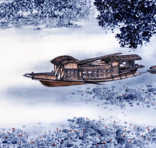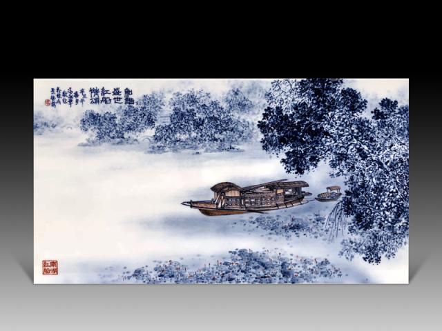 作品《百年辉煌 精神家园》采用了青花斗彩形式,精心再现了中国共产党的诞生地——“中共一大会址”。作品构图协调有致,画面用笔娴熟,层次感丰富;石库门建筑两旁茂密的树木,浓淡相宜,整幅作品用笔严谨中透着生动,令人观看后崇敬之心油然而生。