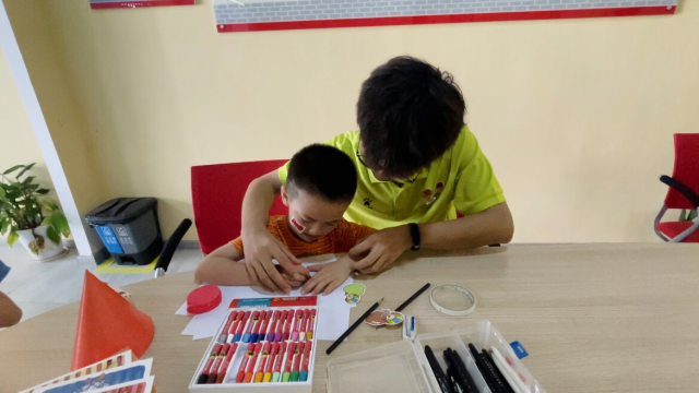 实践乃静思,志愿服务队队员们上午前往汪王庙社区,围绕百年华诞相关文化元素,开展“童心向党”绘画及书法现场教学,通过画画、剪纸和书法的方式向小朋友们普及和宣传党的知识与精神,引导小朋友们听党话、跟党走。