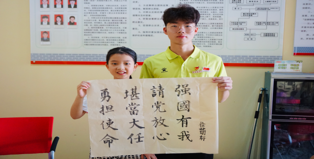 志愿服务队队员杨琪教小朋友们练习书法后的作品