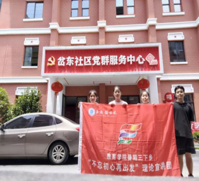 (本网讯:江霞琴、喻晨阳)7月23日,教育学院“不忘初心再出发”社会实践团队来到江西省南昌市岔东社区党群服务中心开展党史理论宣讲和志愿服务活动。