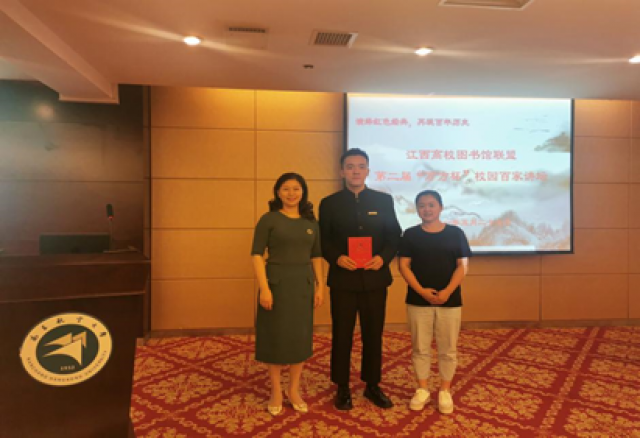 (本网讯:邓倩玲)5月27日,江西省高校图书馆联盟第二届“万方杯”校园百家讲坛演讲比赛火热开展,米兰18级工美陶绘1班税海朋同学荣获一等奖。