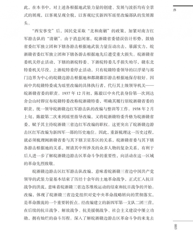 该书以图文并茂的形式,从时间跨度、地理跨度、组织跨度、横向跨度四个方面,回顾了南方三年游击战争中皖浙赣边游击区的革命斗争史实及其领导人物的丰功伟绩,展示了皖浙赣边游击区革命斗争所具有的外张力、内聚力、渗透力三大精神维度。全书具有生动性、可读性和纪实性。