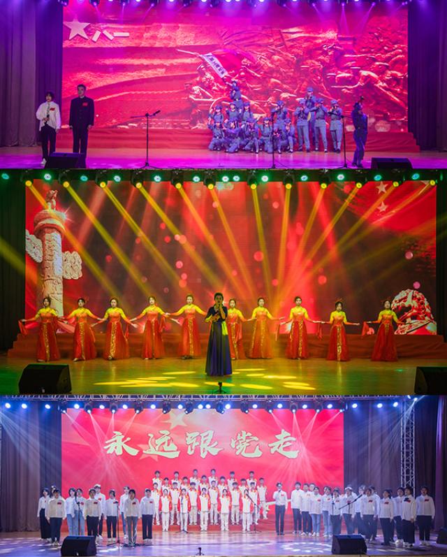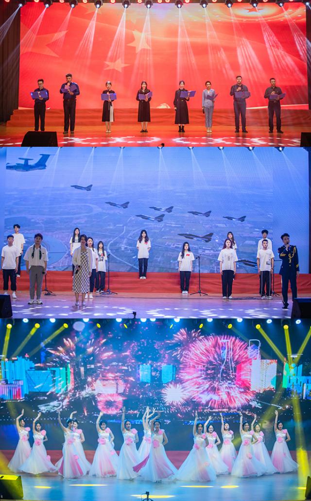 汇报演出由校党史学习教育领导小组办公室主办,工会、宣传统战部、团委、人文学院、教育学院、陶瓷美术与设计艺术学院承办。各二级学院党总支书记、副书记、团委书记、全体辅导员,各工会委员、分工会主席及部分学生代表近600人观看演出。