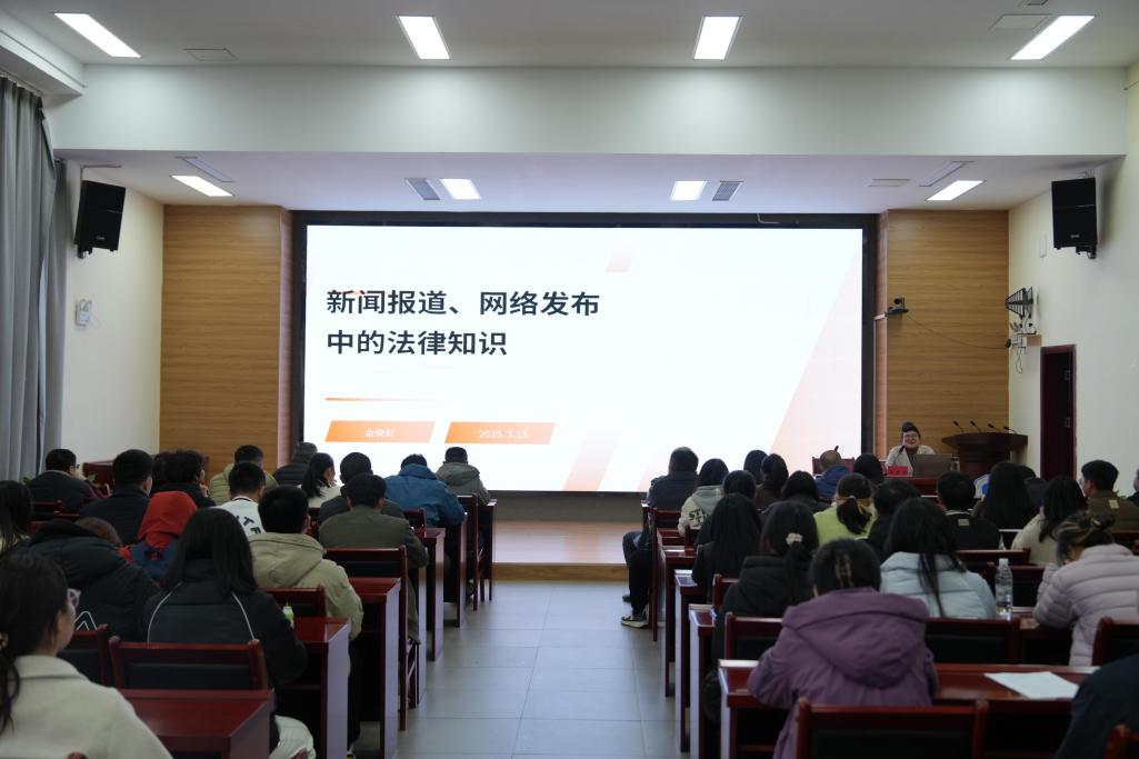 金晓虹围绕“新闻报道和网络发布中为什么要知法”“知识产权基本知识”等方面,结合丰富的实际案例,通俗易懂地讲解了新闻报道与网络发布中涉及的多项法律知识,帮助全校新闻工作者更加清晰地了解新闻报道和网络发布中存在的法律风险和责任。校党委宣传部副部长胡铂则对新媒体审校工作中的相关注意事项进行了讲解。