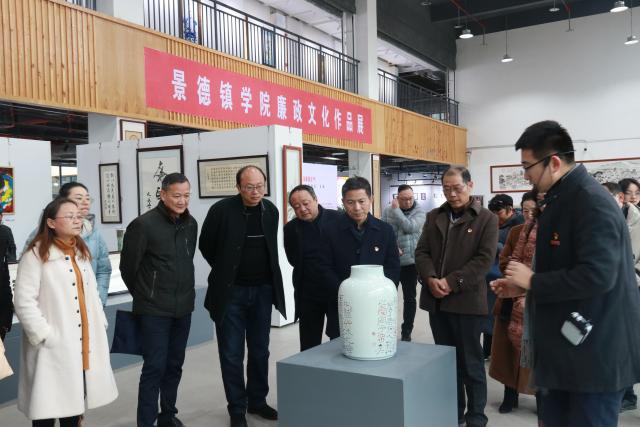 12月23日下午,由中共米兰milan官方网站纪律检查委员会主办、米兰milan官方网站陶瓷美术与设计艺术学院承办的学校“以艺促廉,德蕴清风”廉政文化艺术作品展在陶瓷美术与设计艺术学院一楼展厅举办。米兰milan官方网站党委委员、纪委书记李新荣出席展览活动,校纪委副书记程贤达主持活动,全体纪委委员,各党总支纪检委员、机关党支部纪检委员,全体专、兼职纪检干部,各教学单位、各职能部门党员领导干部,2020年新入职的青年教职工,参展作者和部分学生党员,共100余人参观了展览。