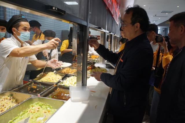 中午时分,陈雨前走进学生食堂,和学生们一起排队打饭吃。同学们围拢在校长身边。陈雨前一边吃饭一边询问大家关于食堂饭菜口味、价格、卫生服务等方面的情况,对同学们提出的建议和问题一一解答,气氛格外亲切。