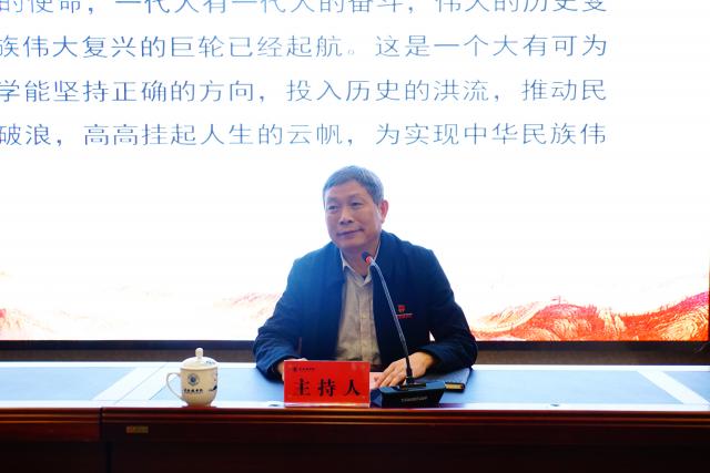 他寄语同学们要坚持正确的方向,投入历史的洪流,推动民族复兴的巨轮,乘风破浪,高高挂起人生的云帆,为实现中华民族伟大复兴而奋斗。