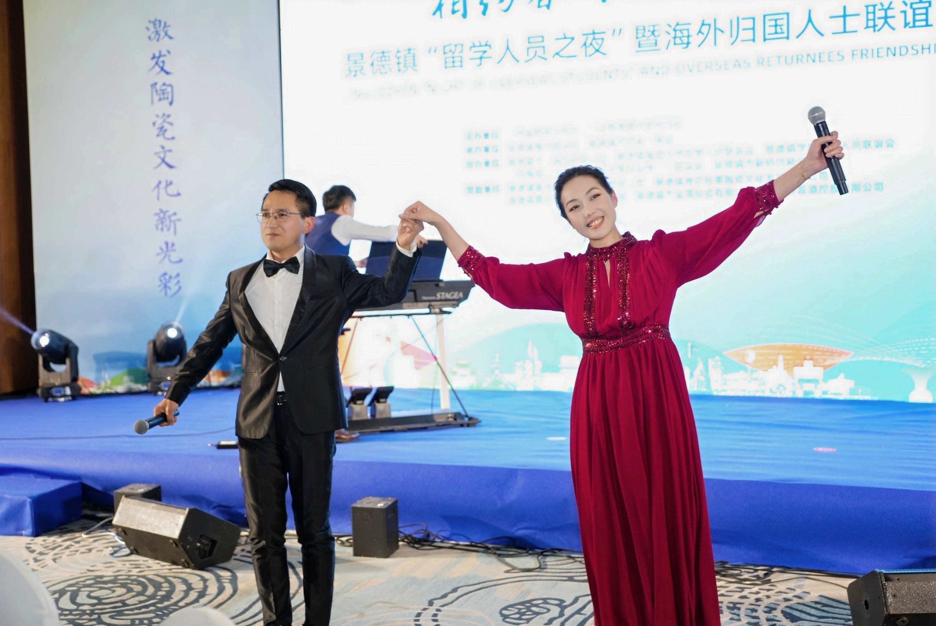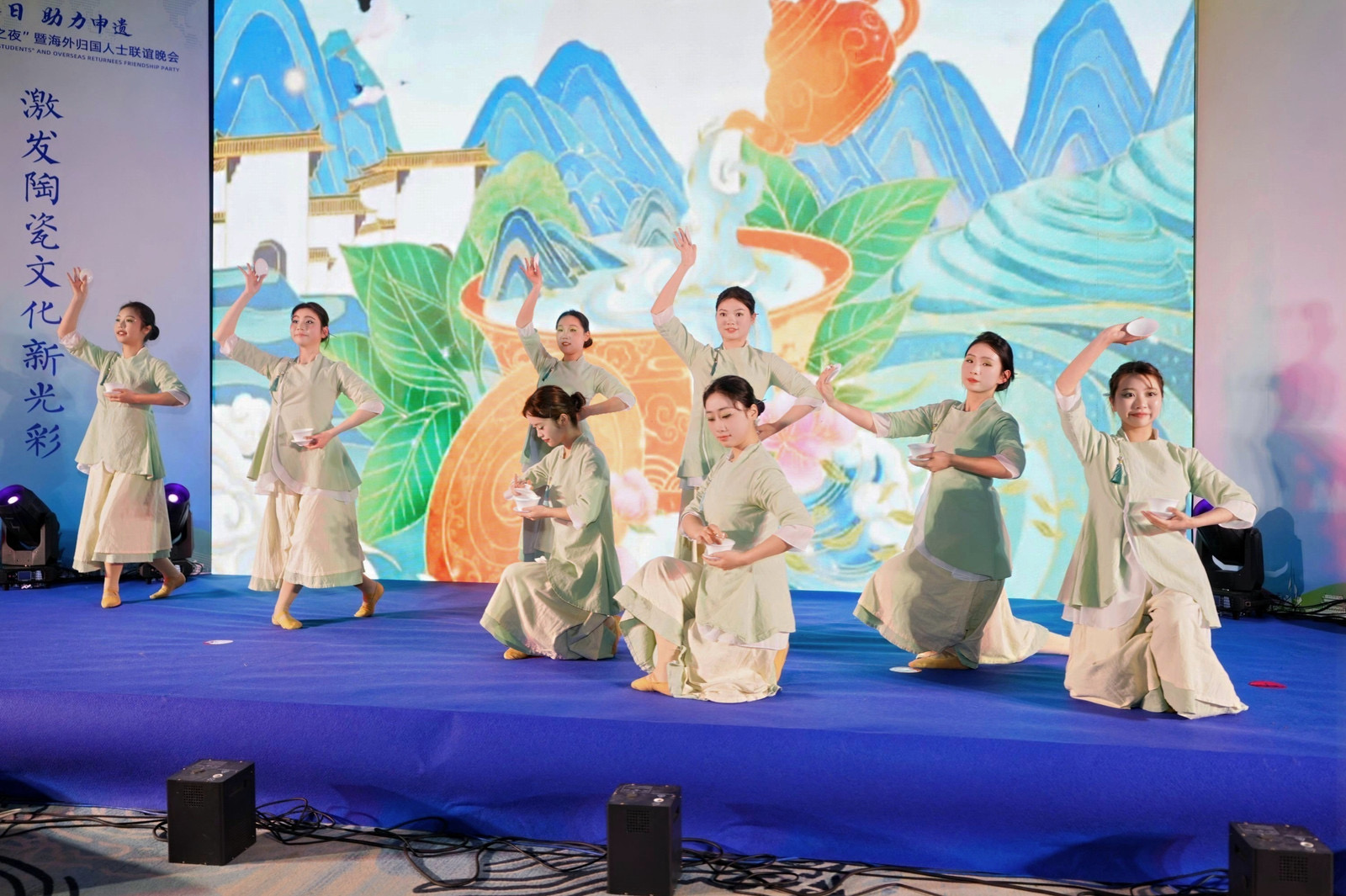 联谊会上,来自景德镇市各行业的归国留学人员还以精湛的茶艺展示和悠扬的《青花瓷》器乐演奏等文艺节目助力申遗,展现了新时代归国留学人员昂扬向上的精神风貌。