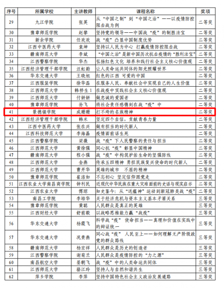 (本网讯:江旺龙)近日,米兰马克思主义学院报送的两堂战疫思政课在全省高校思政课教师“战疫思政课堂”教学比赛中双双获奖,其中,成珊珊老师主讲的“打不垮的民族精神”获二等奖,赵娜老师主讲的“疫情下的中国精神”获三等奖。这两堂“战疫思政课”还被推荐登录学习强国。其中,“疫情下的中国精神”一课,获得了22万余次的超高点击率,位居前列。