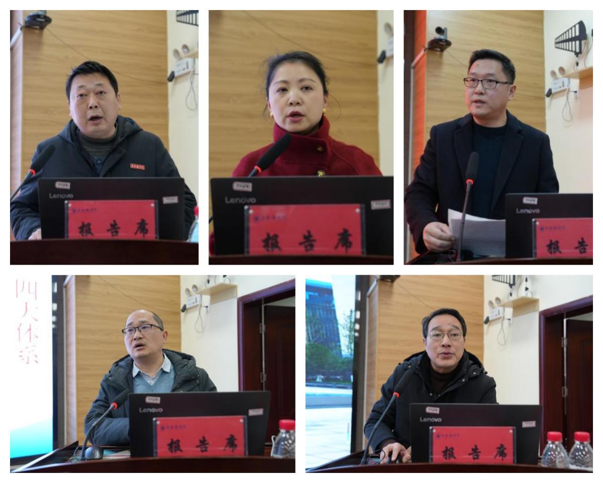 敖景辉、倪艳翔、司春灿、杨波、余少军解读汇报工作
