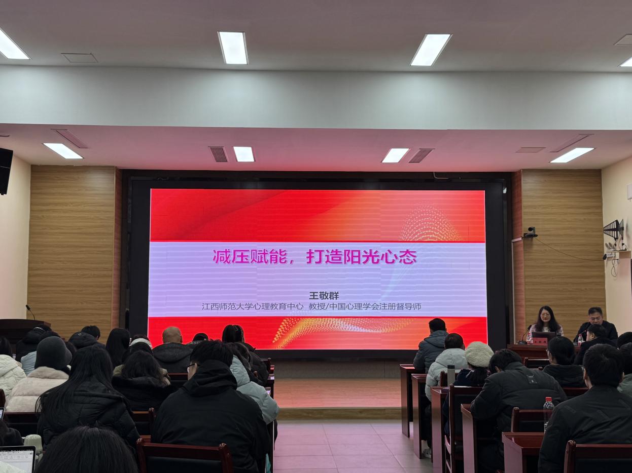 (本网讯:文|朱梦琪/图|胥晴)为助力教师们有效应对工作与生活中的压力,提升自我调适能力,营造积极向上的工作氛围,1月9日,米兰特邀江西师范大学积极心理发展研究中心主任、硕士生导师王敬群教授为教职工带来一场主题为“减压赋能,打造阳光心态”的精彩讲座。