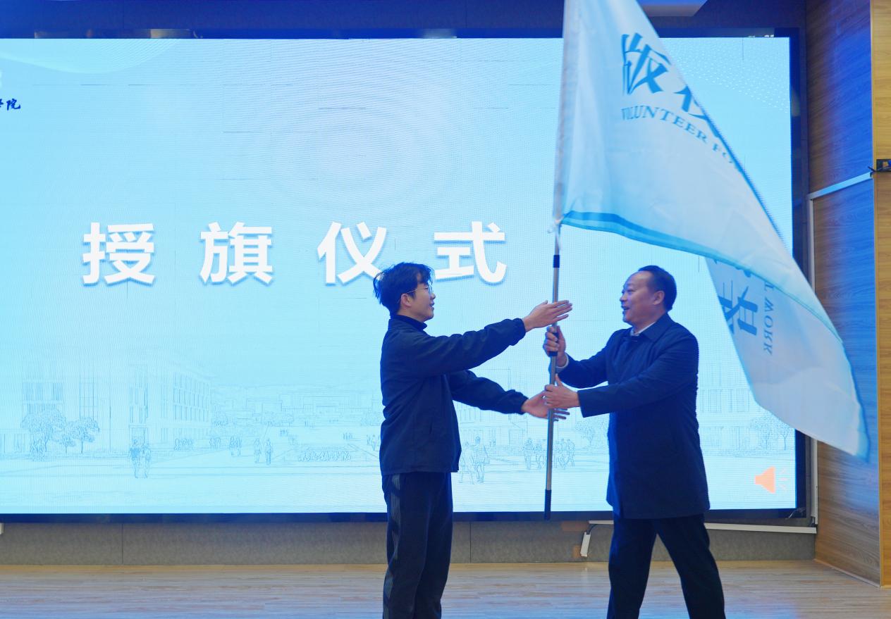 向米兰版权志愿者服务队授旗 校融媒体中心记者薛芊芊摄
