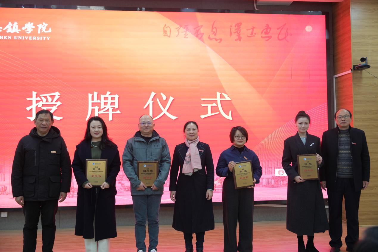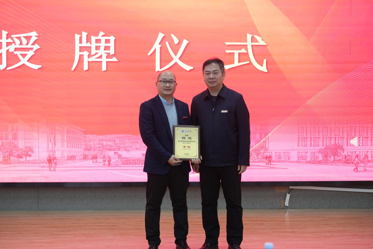 黄志坚、万文军、赵雪政为新当选副会长张博、胡志刚、李谊、洪瑶授牌 校融媒体中心记者王雅丹摄