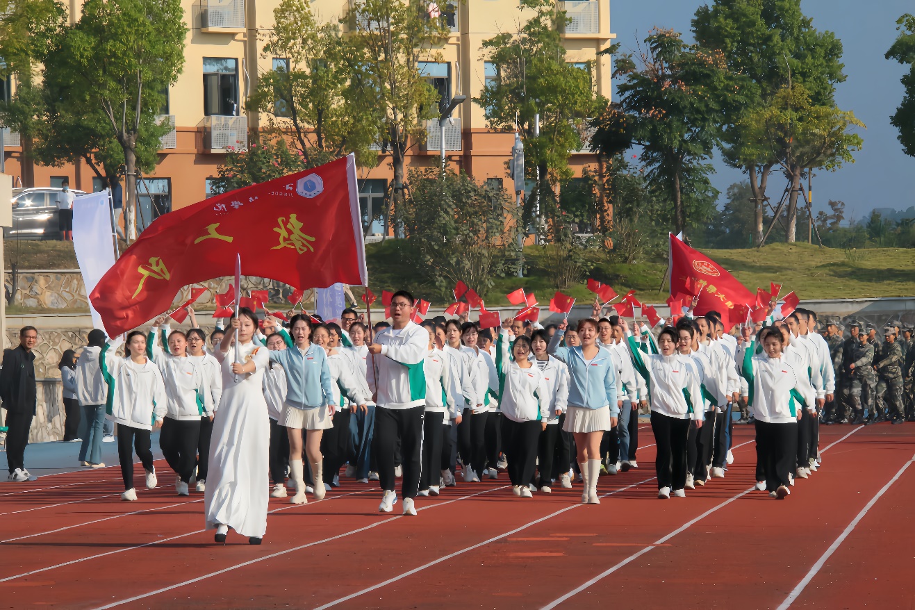 (本网讯:文│廖翊君/图│廖翊君、卢军怡)为全面贯彻党的教育方针,落实立德树人根本任务,以坚实步伐迈向体育强国之路,培养德智体美劳全面发展的社会主义事业建设者和接班人。10月23日上午,米兰第十二届田径运动会在校田径场开幕。校党委书记叶观荣出席并宣布运动会开幕。校党委副书记、校长熊震宇为运动会开幕式致辞,校党委副书记王丽心,校党委委员、副校长郑昕芾,副校长黄志坚,校党委委员、组织部部长朱贺江,校党委委员、统战部部长万文军,校党委委员、宣传部部长赵雪政出席开幕式。校党委委员、副校长方漫主持开幕式。
