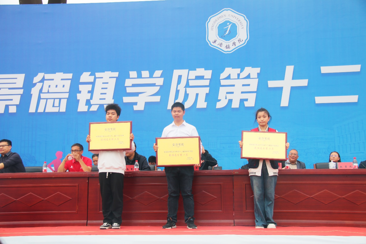 随后,体育学院院长李长春宣读各项比赛成绩。在现场师生的热烈掌声和欢呼沸腾中,校领导为获奖单位和个人颁奖。这一刻,荣耀与梦想交织,激情与汗水共鸣,展示了属于景院人的特有浪漫。