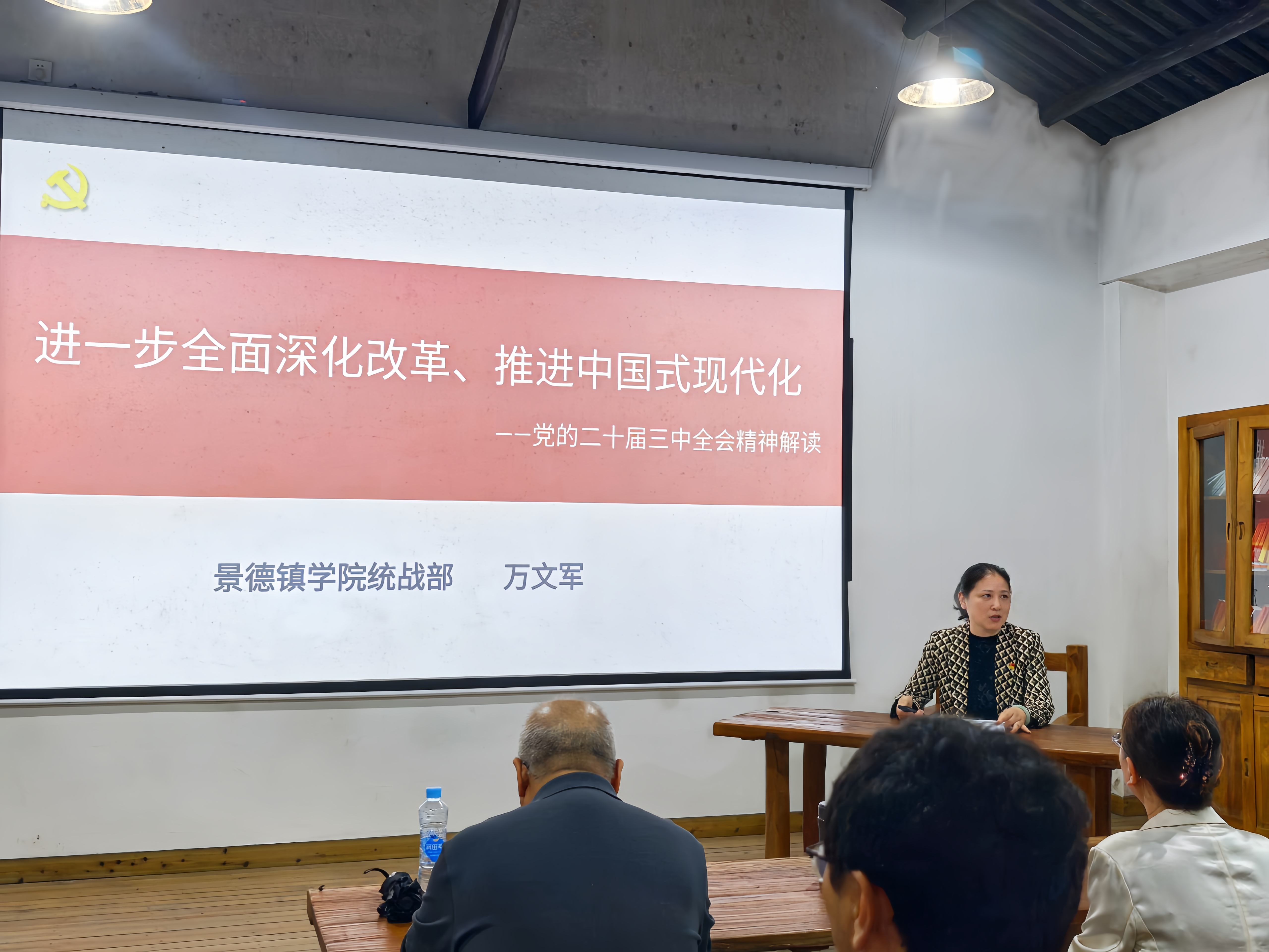 (本网讯:文/张琦|图/刘燕敏)为全面深入学习贯彻党的二十届三中全会精神,引导广大党员师生将思想和行动统一到全会精神上来,心怀敬畏之心,深耕红色文化基田,铭记红色血脉之源。10月18日上午,校党委委员、统战部部长万文军在瑶里红色学堂以“进一步全面深化改革、推进中国式现代化”为题为教育学院全体师生党员作党的二十届三中全会精神宣讲。