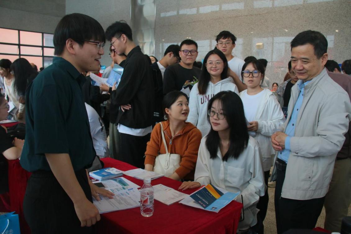 叶观荣在招聘会现场调研指导 校融媒体中心记者刘欢欢摄