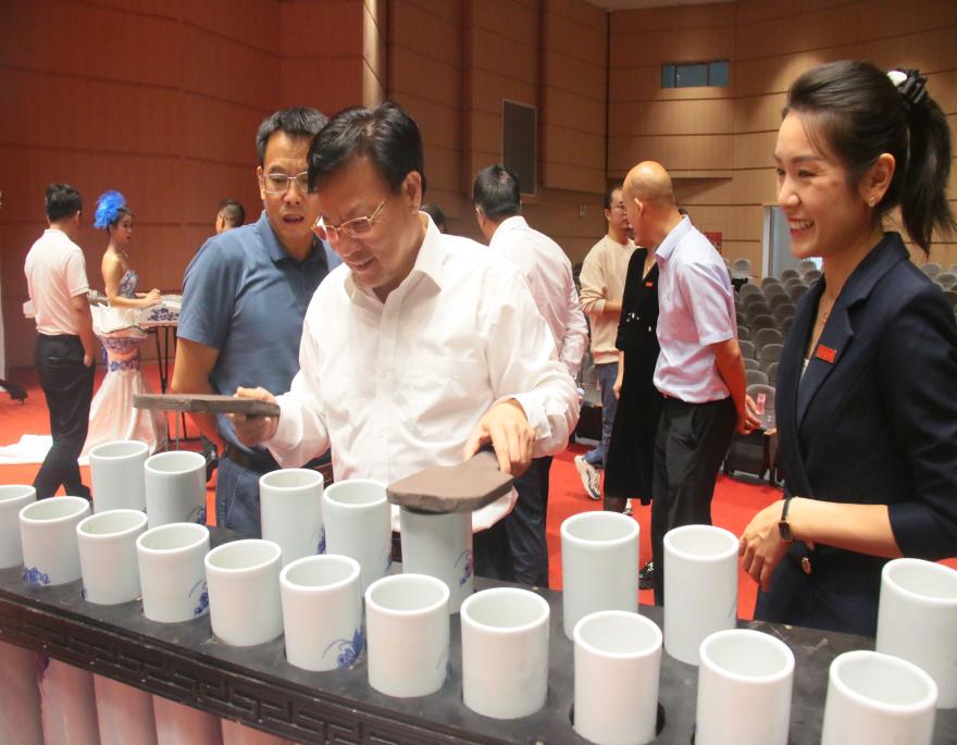 调研组还在校音乐厅观看了音乐舞蹈学院学生的瓷乐表演。在音乐舞蹈学院院长于芳的细致讲解下,调研组成员不仅领略了瓷乐的独特魅力,还对瓷乐的历史背景、制作工艺及演奏技巧有了初步认识。
