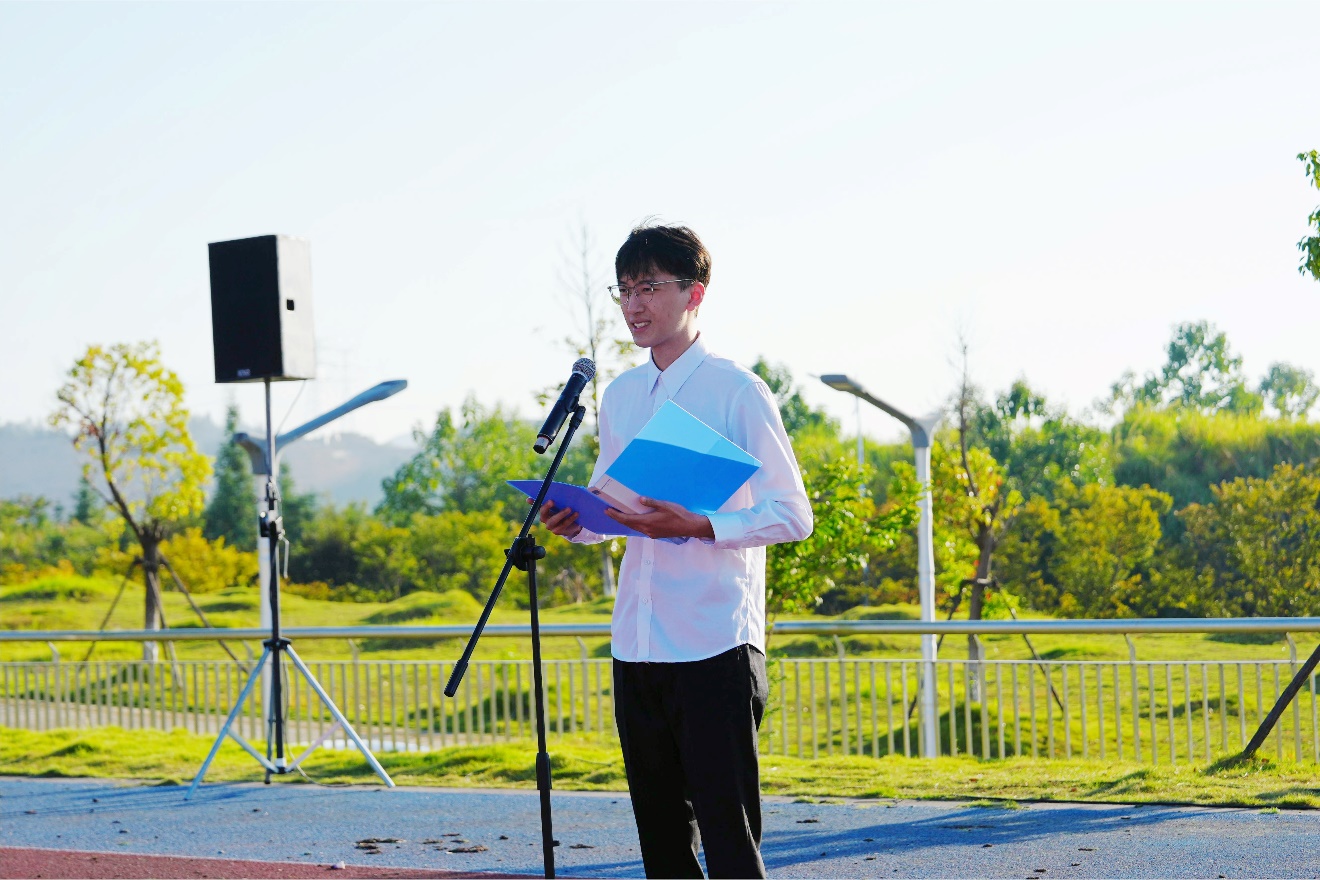 2023年景德镇市优秀共青团员、第十八届挑战杯江西省大学生课外学术科技作品竞赛省奖获得者、马克思主义学院2022级思想政治教育专业1班的骆逢飘同学作为学生代表发言。他深情回顾了中华人民共和国成立75年来的辉煌历程,号召同学们以勤奋为舟、以智慧为帆,在知识的海洋中破浪前行,不断探索未知,追求卓越,将个人理想融入国家发展大局,用自己的实际行动书写无愧于时代、无愧于人民的青春华章,为实现中国梦贡献青春力量。