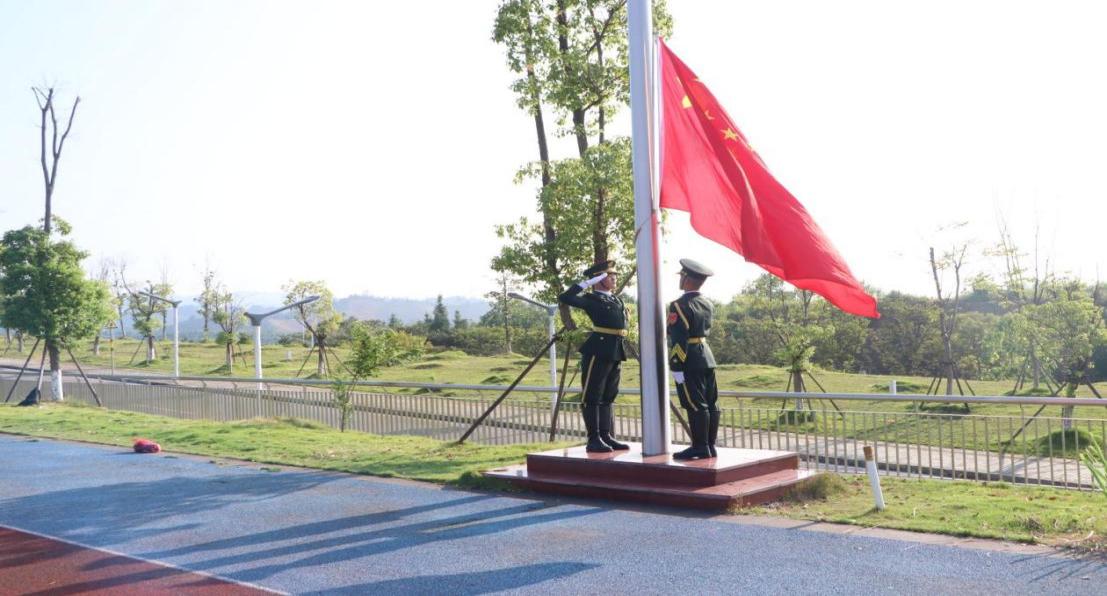 开训仪式在庄严的国歌声中正式拉开帷幕,全体师生昂首肃立,向国旗行注目礼,齐唱国歌。秋日的阳光遍洒宽阔的田径场,“华夏红”与“迷彩蓝”交相辉映,青春梦从此处启航。
