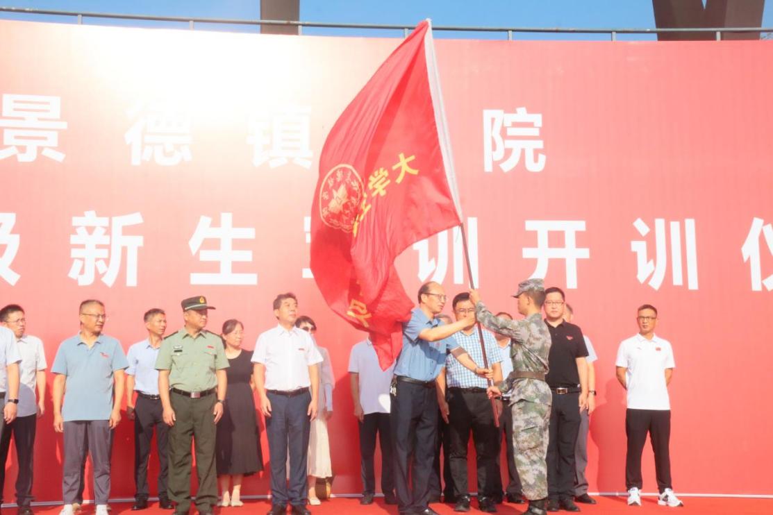 赵雪政向军训团授旗 校融媒体中心记者周可玮摄