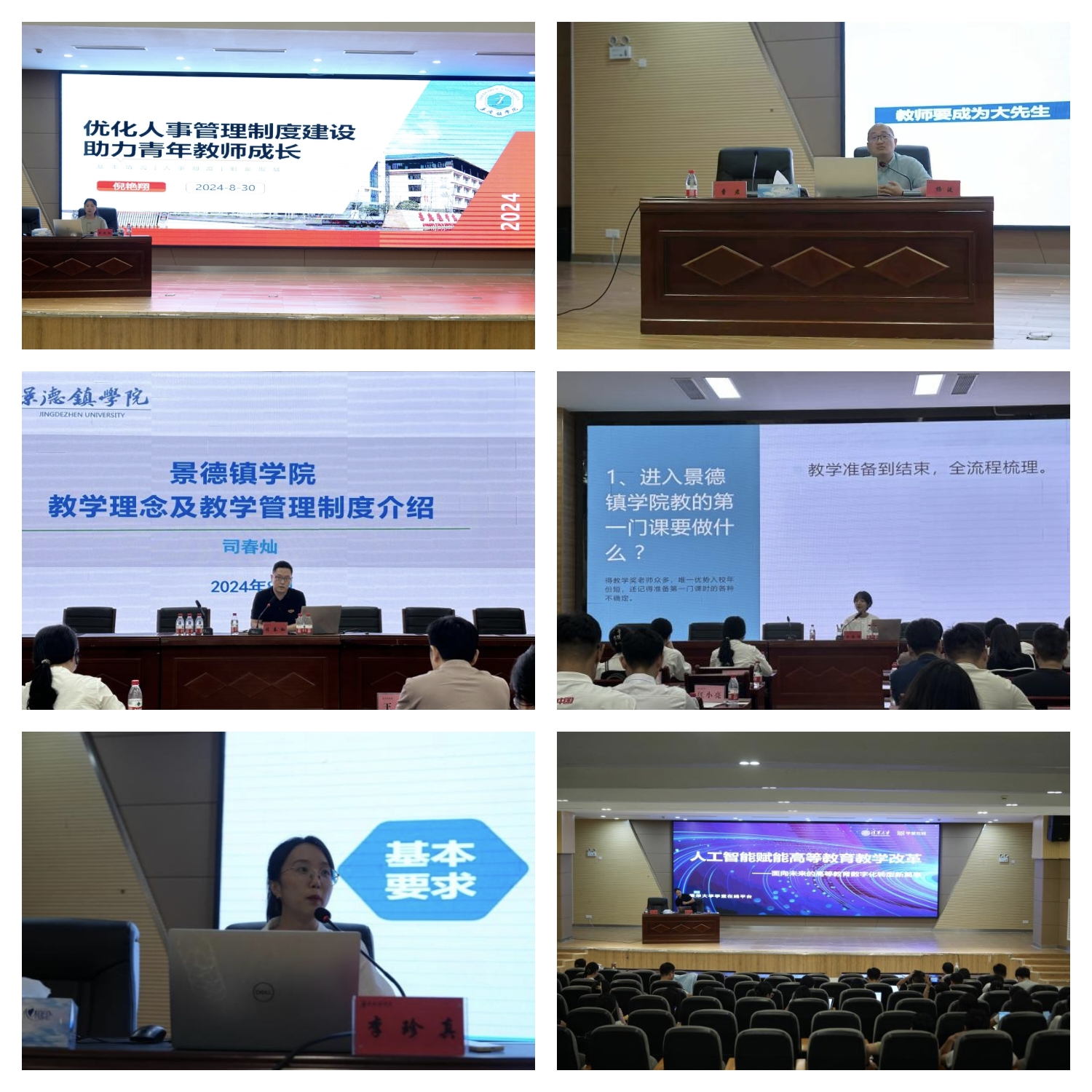 培训会上,人事处处长倪艳翔、教务处副处长(主持工作)司春灿和科研处处长杨波分别结合学校的人事、教学和科研管理制度对新入职教师进行了系统的培训,使大家对学校的相关制度有了初步了解,为今后的工作和个人发展起到了指引方向的作用。学校优秀教师代表——陶瓷美术与设计艺术学院周雅琦和信息工程学院李珍真两位老师,结合自身专业特点,与新入职教师们分享了课程教学经验以及参加全省青年教师教学竞赛和教师教学创新大赛等比赛的心得体会及宝贵经验。清华大学学堂在线平台高级培训师张利楠对新入职教师进行了“基于雨课堂开展混合式教学”的专题培训。