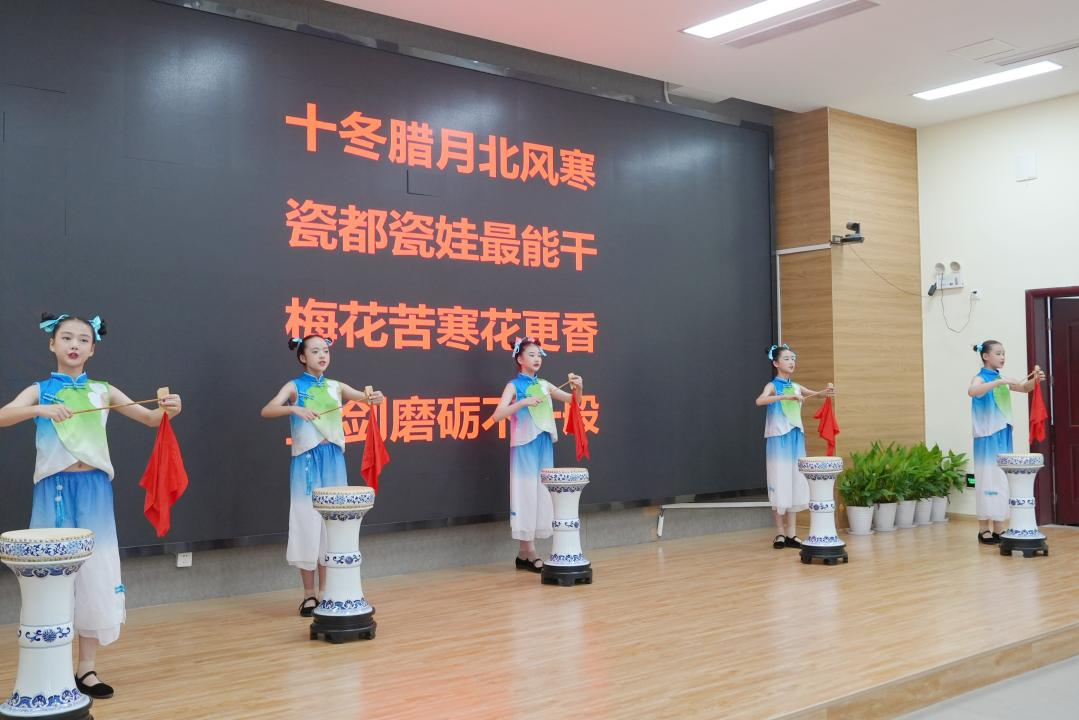 仪式上,浮梁县一小学生代表刘嘉越同学作发言,与会领导为《能干娃》参演学生颁发纪念品。出征仪式在小演员们生动活泼的景德镇大鼓表演《能干娃》中落下帷幕。