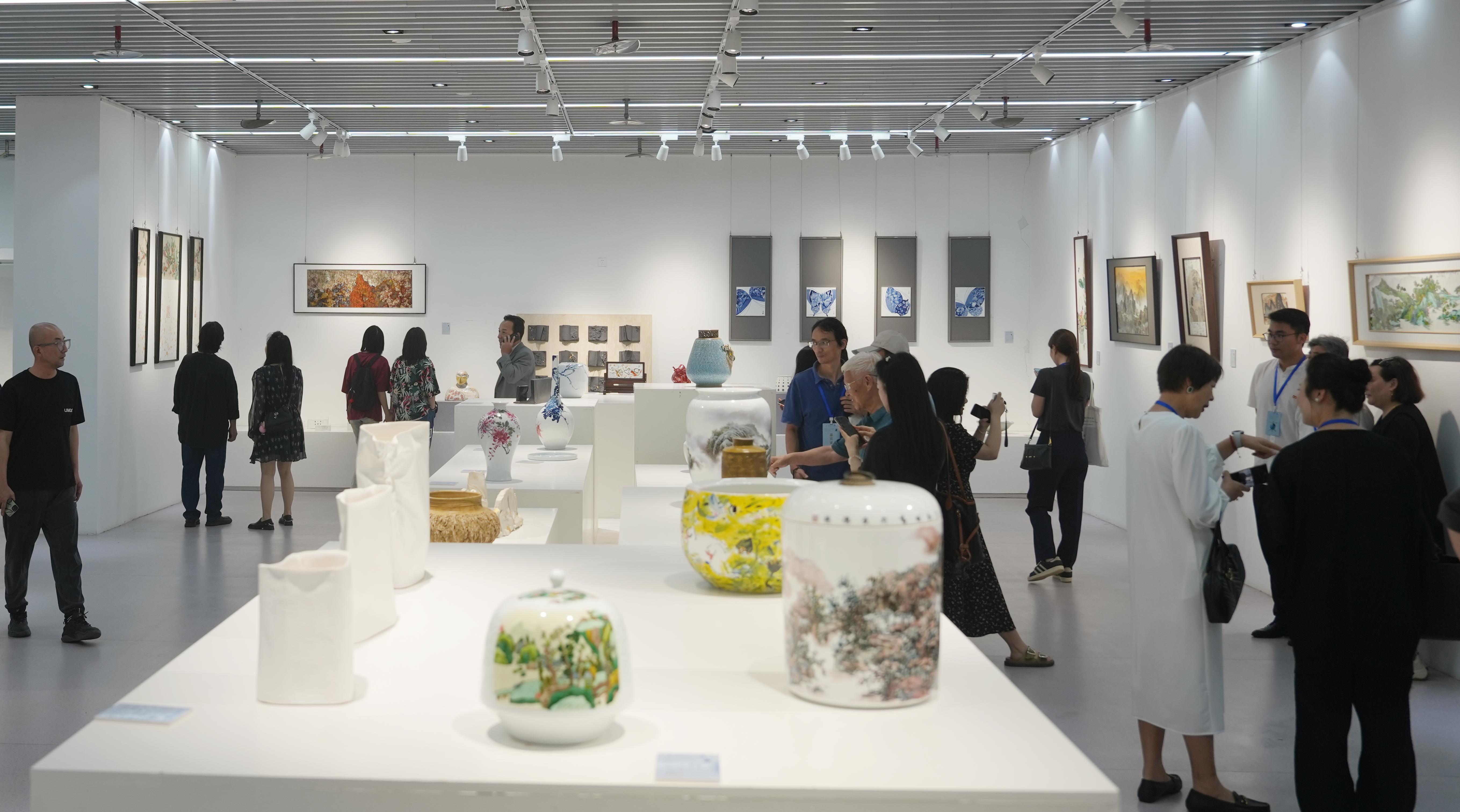 据悉,此次展览将展出至7月12日,邀请了49名韩国艺术家、80名国内多地陶瓷艺术家、86名校内教授、学科带头人、青年教师参展,共展出两百余件作品,涵盖了陶瓷绘画、现代陶艺、综合装饰、雕塑、书法等多个陶瓷艺术门类,体现了传统工艺与现代陶艺的结合,部分作品还融入了新材料,新技术,充分展现了传统陶瓷工艺与现代陶艺的碰撞,基本代表了当下中韩陶瓷艺术发展的方向和水平。陶艺展依托联合国教科文组织“陶瓷文化保护与创新”教席,充分发挥教席在人才培养、人文交流、学术研究和国际合作中的作用,进一步弘扬中国陶瓷文化,为促进中韩两国陶瓷文化的广泛交流与合作,搭建了良好的学术互动平台,助力景德镇国家陶瓷文化传承与创新试验区建设,把“千年瓷都”这张靓丽的名片擦得更亮!
