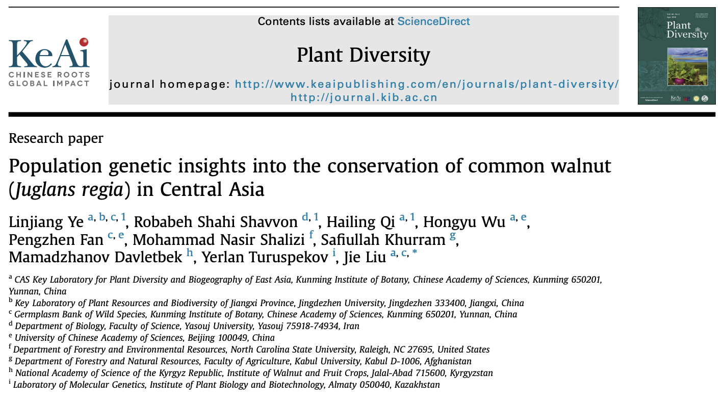 (本网讯:叶林江)近日,米兰生物与环境工程学院青年教师叶林江博士,与来自中国科学院昆明植物研究所、伊朗亚苏伊大学、美国北卡罗来纳州立大学等研究团队合作,在植物科学领域国际权威期刊《PlantDiversity》上发表题为“Population genetic insights into the conservation of commonwalnut(Juglansregia) inCentralAsia”的研究成果。