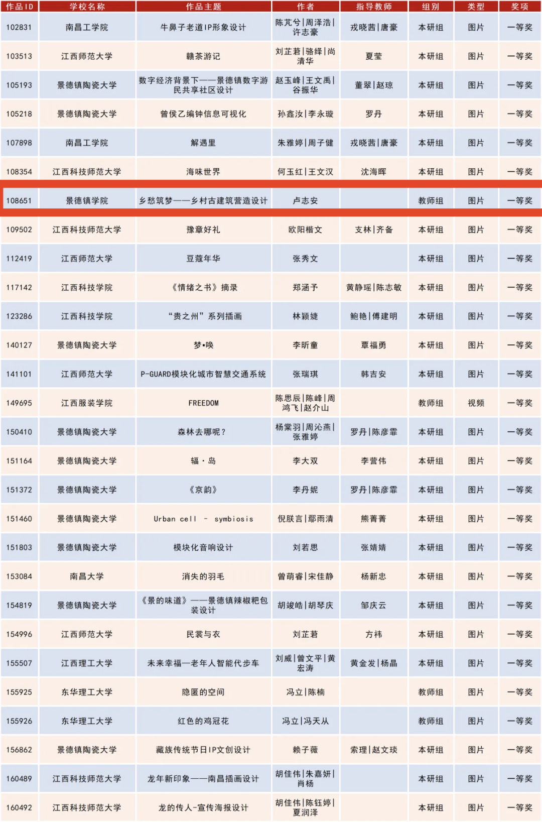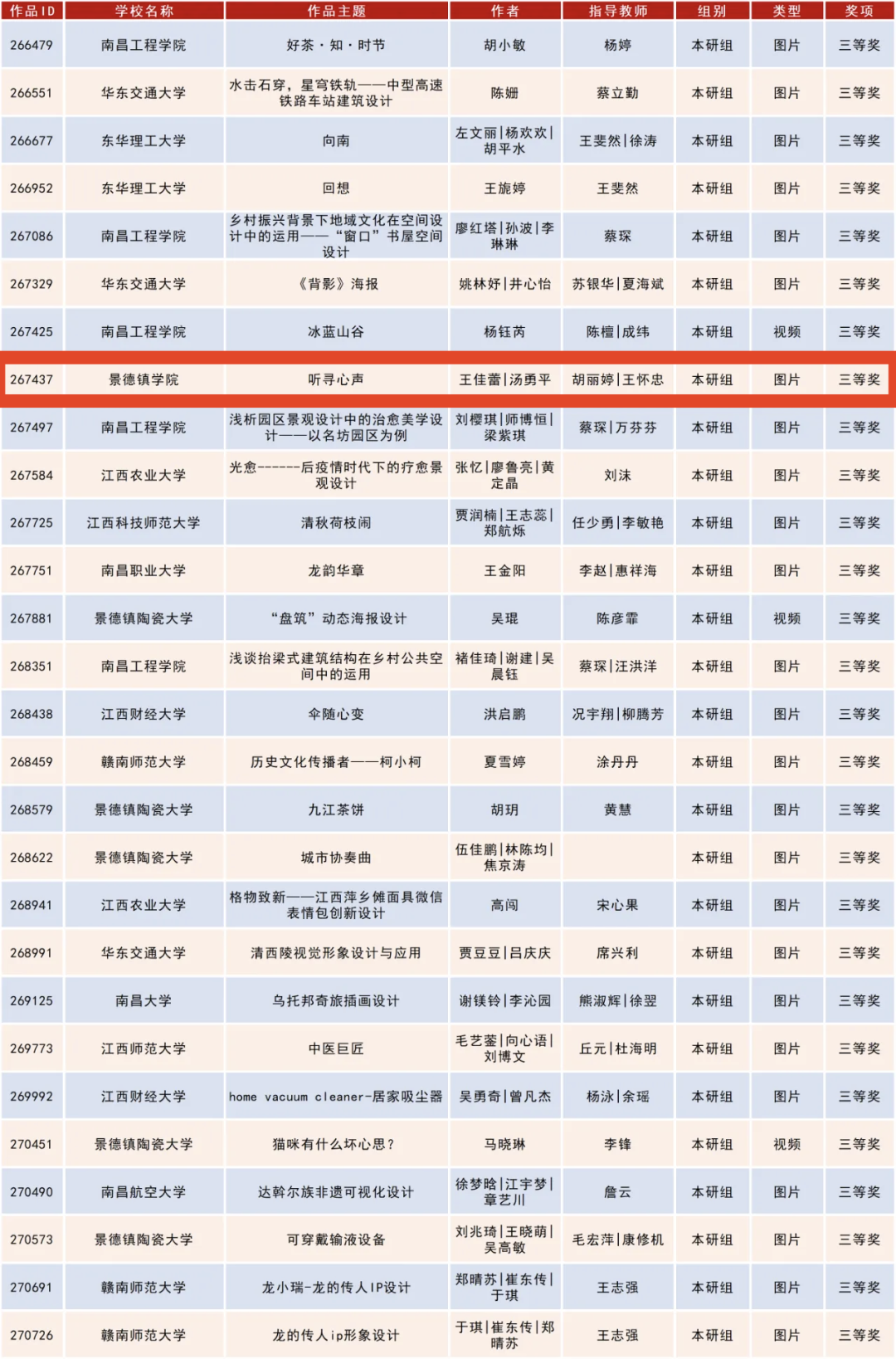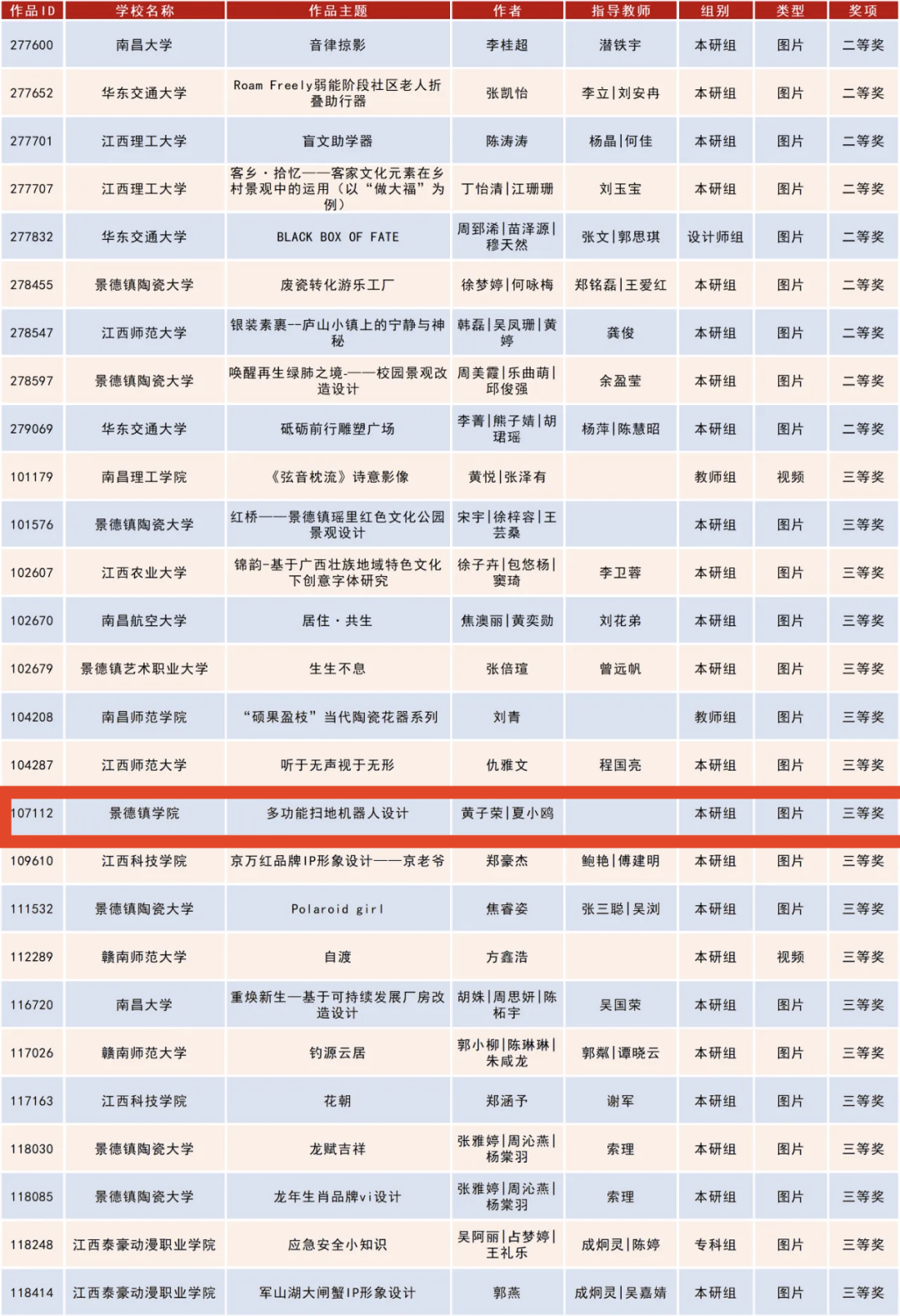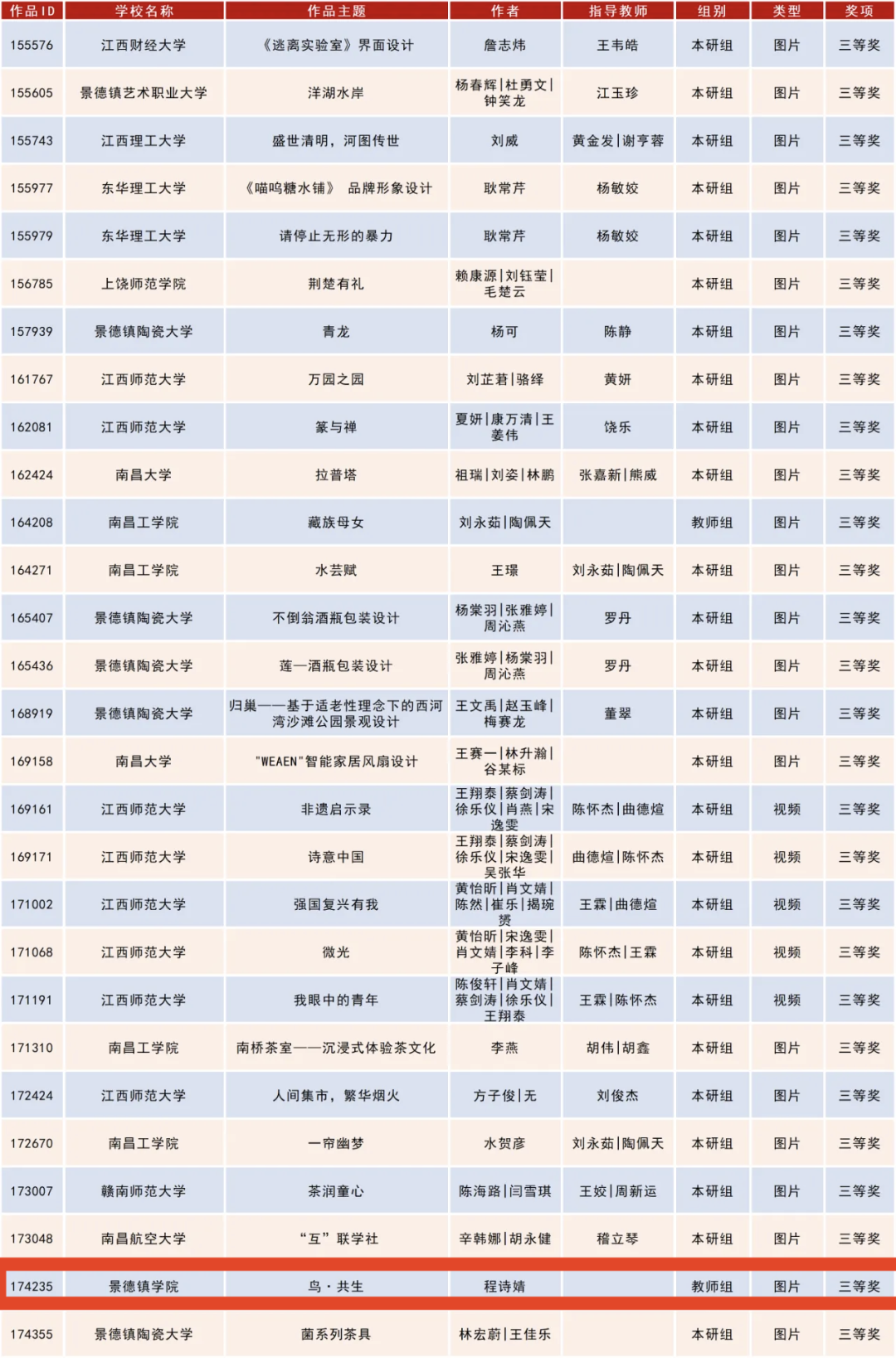 获奖作品名单 图片源自陶瓷美术与设计艺术学院公众号