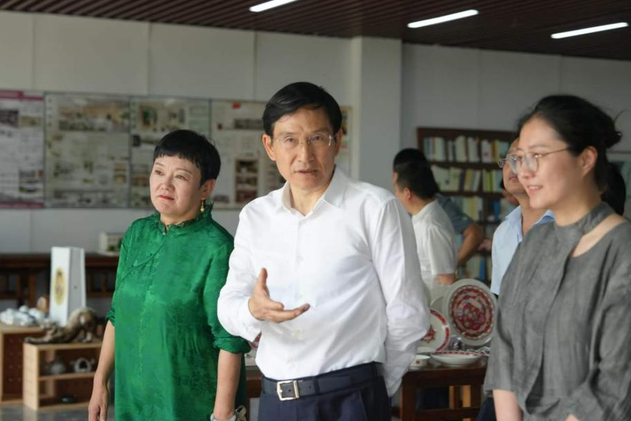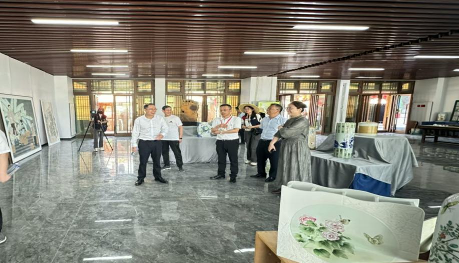 展览现场,一件件精美的陶瓷艺术品与茶园风光交相辉映,既展现了陶瓷艺术的独特魅力,又凸显了浮梁茶园的生态之美。景德镇市、县各级领导及各茶产区特邀嘉宾都到现场进行参观,江西省副省长陈小平莅临展览现场,对学生们的创新设计和艺术实践给予了高度评价。在参观过程中,陈小平详细了解了每件作品的设计理念和制作过程,对于学生们将传统陶瓷艺术与现代审美相结合的探索表示赞赏。