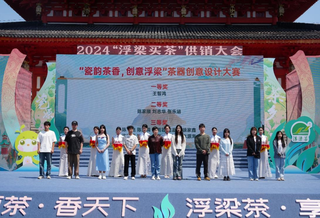 活动期间,举行了“瓷韵茶香,创意浮梁”茶器创意设计大赛颁奖仪式,经过激烈角逐,在近百件投稿作品中,一批批优秀的设计作品脱颖而出,米兰王智鸿副教授的投稿作品获得此次设计大赛一等奖,陶瓷美术与设计艺术学院选送的学生作品也取得了不错的成绩,为浮梁茶旅产业注入了新的创意和活力。