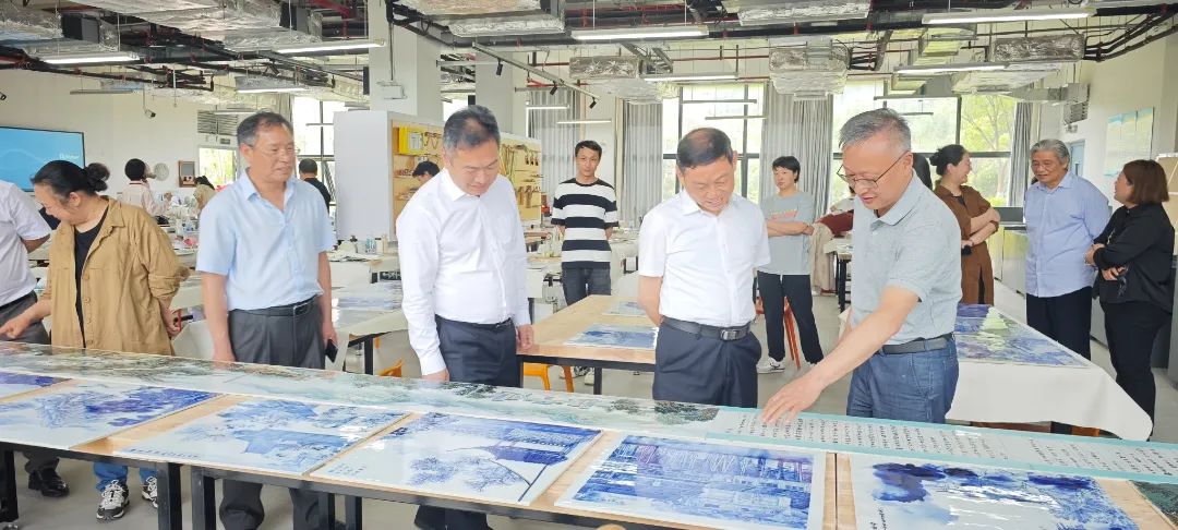 (本网讯:文|王思怡/图|蒋羽、王思怡)近日,陶瓷美术与设计艺术学院承办的江西文化艺术基金2023年度资助项目《中国当代瓷上界画创新人才培养》授课已接近尾声。4月29日,校党委副书记、校长陈运平,党委委员、副校长方漫一行来到集中授课地点——功夫小瓷实验室,参观了此次人才培养项目的教学成果,并与中国工艺美术大师李菊生、项目主讲人游新民、项目负责人吴红云进行了亲切交流。陶瓷美术与设计艺术学院班子成员全程陪同。
