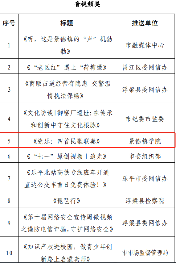 (本网讯:欧阳晰)为进一步弘扬网络正能量,唱响主旋律,在网上讲好景德镇故事,传播景德镇好声音,景德镇市网络安全和信息化中心开展了2023年度景德镇市瓷都正能量“五个十”网络精品和瓷都网络宣传“四个十佳”先进个人(账号)的评选活动。
