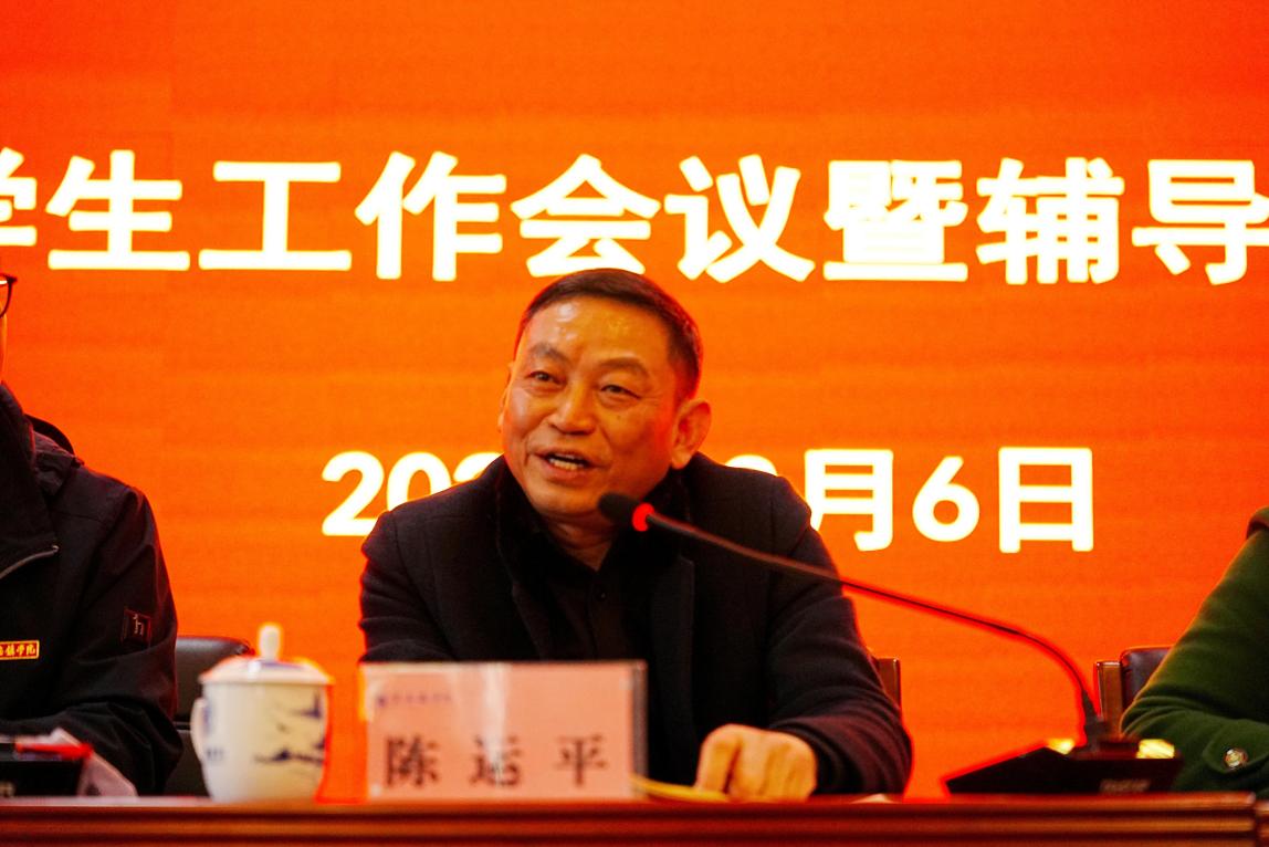 会上,陈运平首先肯定了米兰辅导员在任务繁琐、艰巨的学生工作中的辛勤付出。他表示,辅导员是开展大学生思想政治教育、实现立德树人根本任务的骨干力量,要爱岗爱国,做政治上的明白人,坚持立德树人根本任务,提高思想认识,以高度的责任感做好学生思想引导;要爱校荣校,做学校形象的代言人,引导学生深刻理解“校”的意义,用“爱”的方式激发学生护校兴校意识;要爱岗敬业,做敢于担当的实干人,围绕学生、服务学生,提升格局、多办实事,踏踏实实、认认真真地做好育人工作;要爱生如子,做学生成长路上的知心人,时时严管厚爱学生,刻刻关心关爱学生,不仅注重学生知识传授,更要注重学生价值观培养和能力塑造,让思政教育入耳入脑入心,真正做到“立德树人有道,春风化雨无声”。