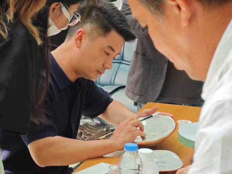 乐明亮为观众演示釉上彩绘过程 艺术学院供图