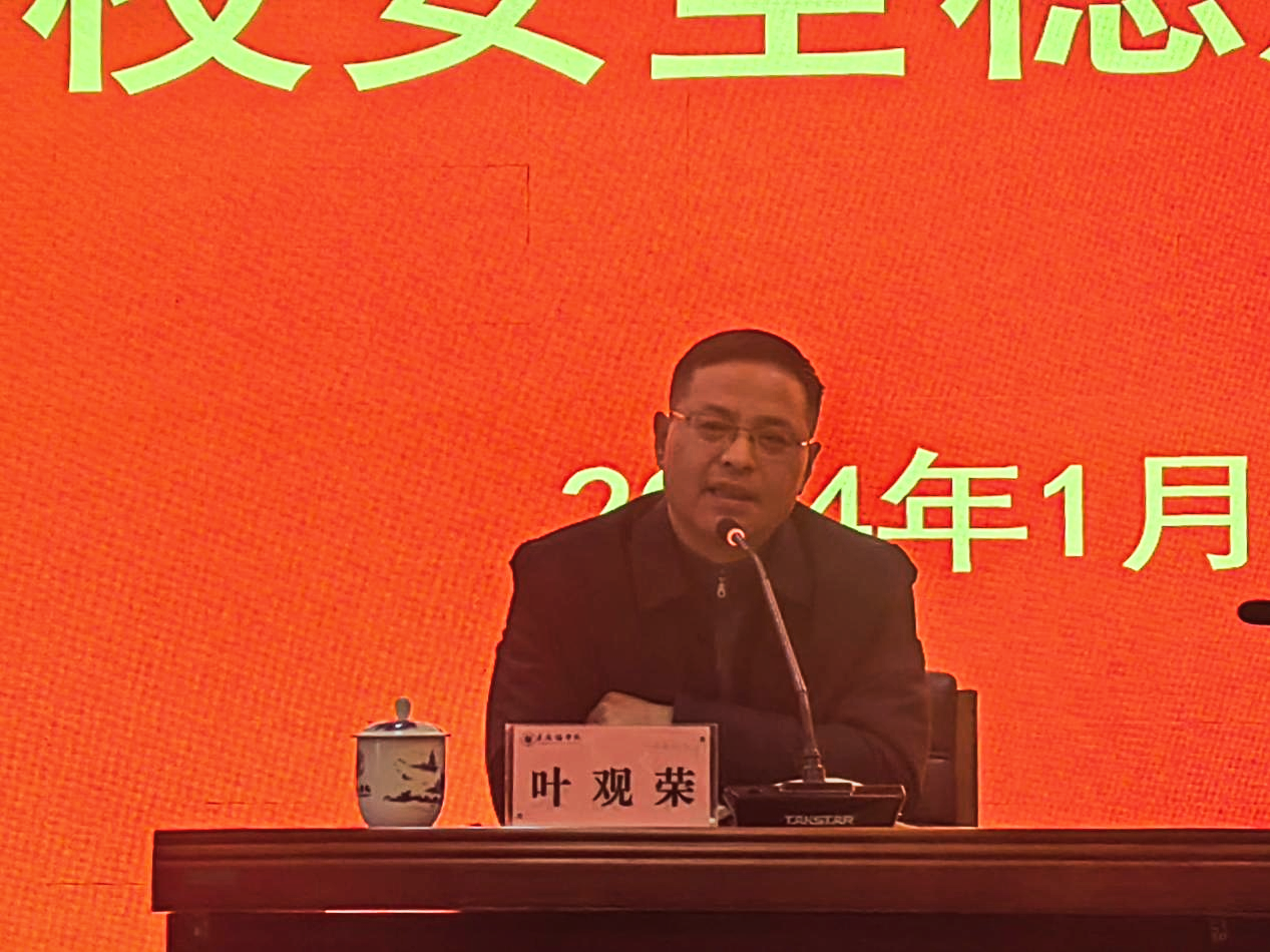 叶观荣强调,要提高政治站位,强化政治意识、大局意识、责任意识,站在对学校安全事业负责的高度,确保校园整体安全稳定;要加强风险管控,守土有责、守土尽责,进一步压紧压实安全稳定工作责任,共同做好校园安全教育与管理;排查整治要从速、从细、从严,真正把安全稳定工作落得更实、抓得更好。