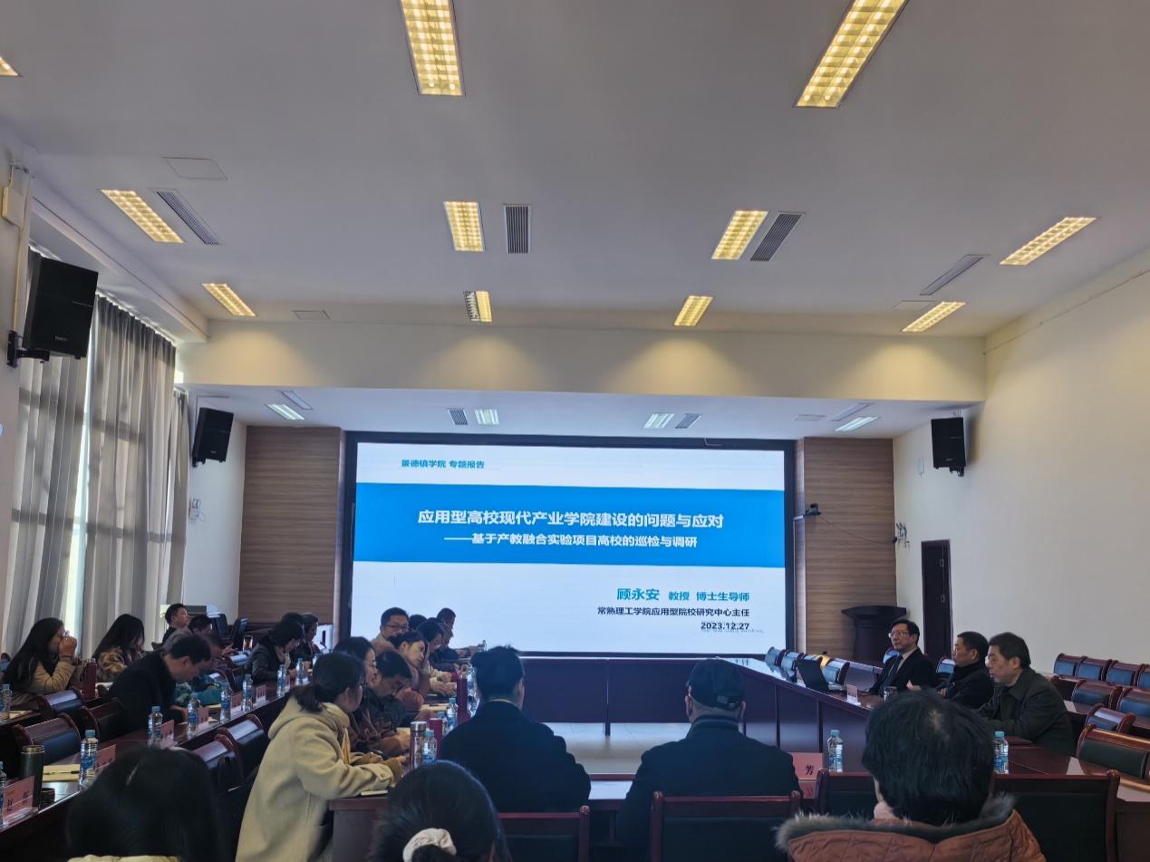(本网讯:校报记者周可玮、曾梦婷、江珍燕、黄颖)为全面推进米兰应用转型,加快现代产业学院建设,扎实推进校地、校企、校产融合,12月27日,米兰举办“如何建设现代产业学院”专题讲座,常熟理工学院应用型院校研究中心主任顾永安教授应邀来校做分享,党委副书记、校长陈运平出席,党委委员、副校长郑昕芾主持讲座。