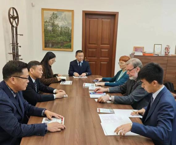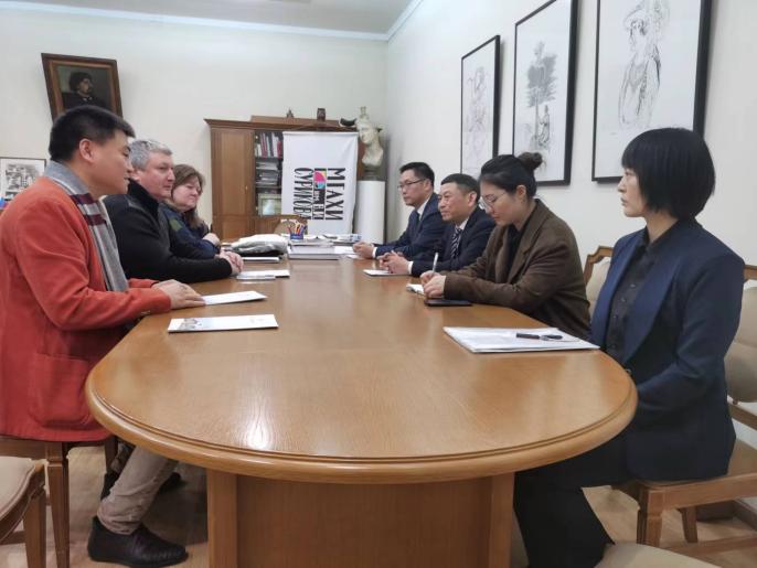 在俄罗斯国立工艺美术大学,代表团会见了该校校长库拉索福、副校长斯列普欣、丝路创新学院院长郭晓宾、信息处处长安娜,校长秘书吉亚娜、博物馆馆长娜达利亚。双方就多种模式开展国际暑期项目、联合举办国际论坛、互派学者访学等展开讨论,并达成一致意见,双方签署了合作意向书。代表团还应邀参观了该校展览馆。