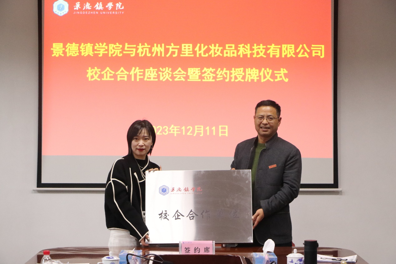 米兰与杭州方里化妆品科技有限公司召开校企合作座谈会暨签约授牌仪式