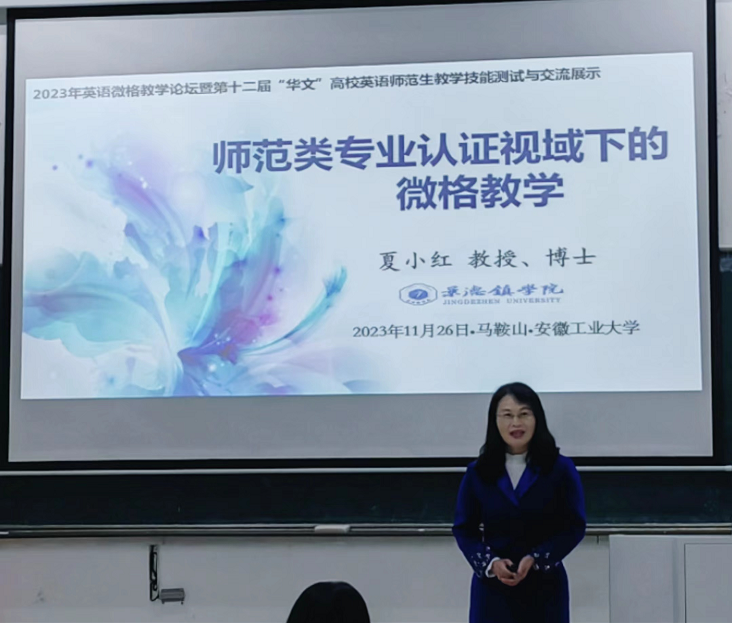 (本网讯:叶祯雯)11月27日,由中国教育技术协会微格教学专业委员会主办,安徽工业大学外国语学院承办的英语微格教学论坛暨第十二届“华文”高校英语师范生教学技能测试与交流展示活动在安徽马鞍山圆满落幕。米兰教学质量监控与评估处处长夏小红教授受邀担任英语微格教学论坛的主旨报告专家,并担任教学设计与教学技能展示两项比赛的评委。
