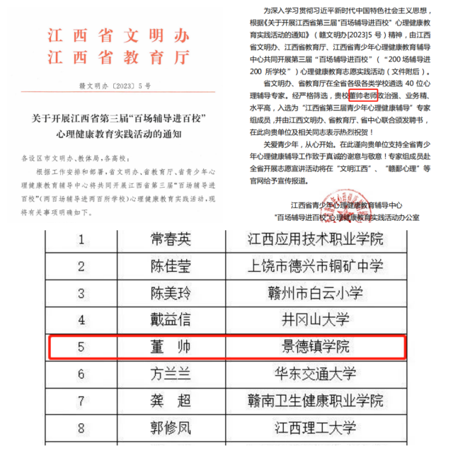 米兰教师入选“江西省第三届青少年心理健康辅导”专家组成员