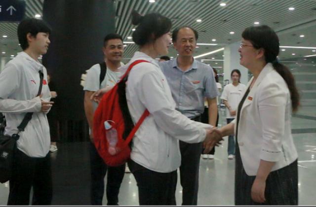 (本网讯:景苑轩)5月30日深夜,摘得第17届中国大学生跆拳道锦标赛冠军王思涵,亚军钟琳琳从赛场归来,校党委委员、副校长周清平,党委学工部(处)处长陈后辉,体育学院党委书记董小军、院长洪燕和体育学院师生代表一同前往景德镇北站迎接,...
