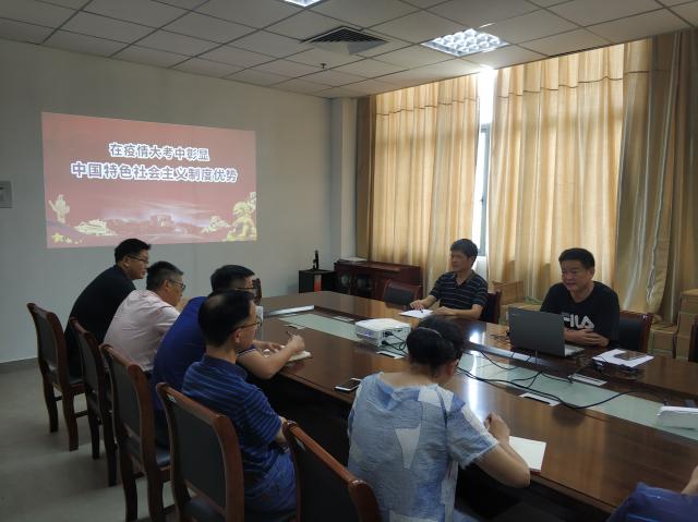 (本网讯:洪耀球)在庆祝中国共产党成立99周年之际,7月1日下午,机关四支部开展主题党日活动。校党委委员、副校长吴丁,教务处长余金保,支部书记洪耀球分别为支部全体党员上党课。 吴丁以“在疫情大考中彰显中国特色社会主义制度优势”...