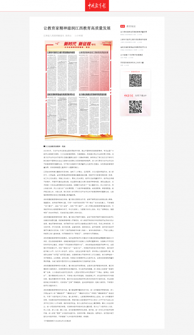副省长孙洪山:让教育家精神滋润江西教育高质量发展
