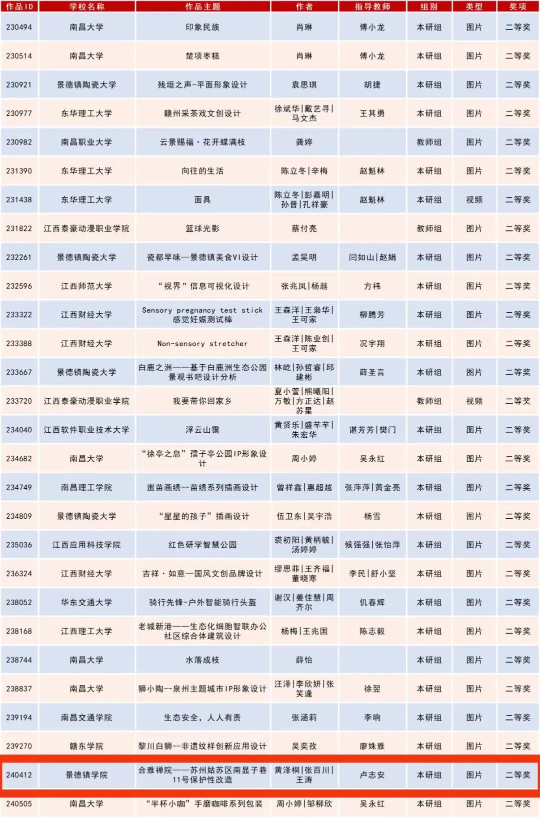 (本网讯:何远梅)近日,第八届米兰设计周作品设计大赛江西赛区比赛结果公布,米兰陶瓷美术与设计艺术学院共有四件作品获奖。其中,环境设计系教师卢志安获教师组一等奖,雕塑专业教师程诗婧获教师组二等奖,7名同学在学生本研组中分别获二等奖1项,...