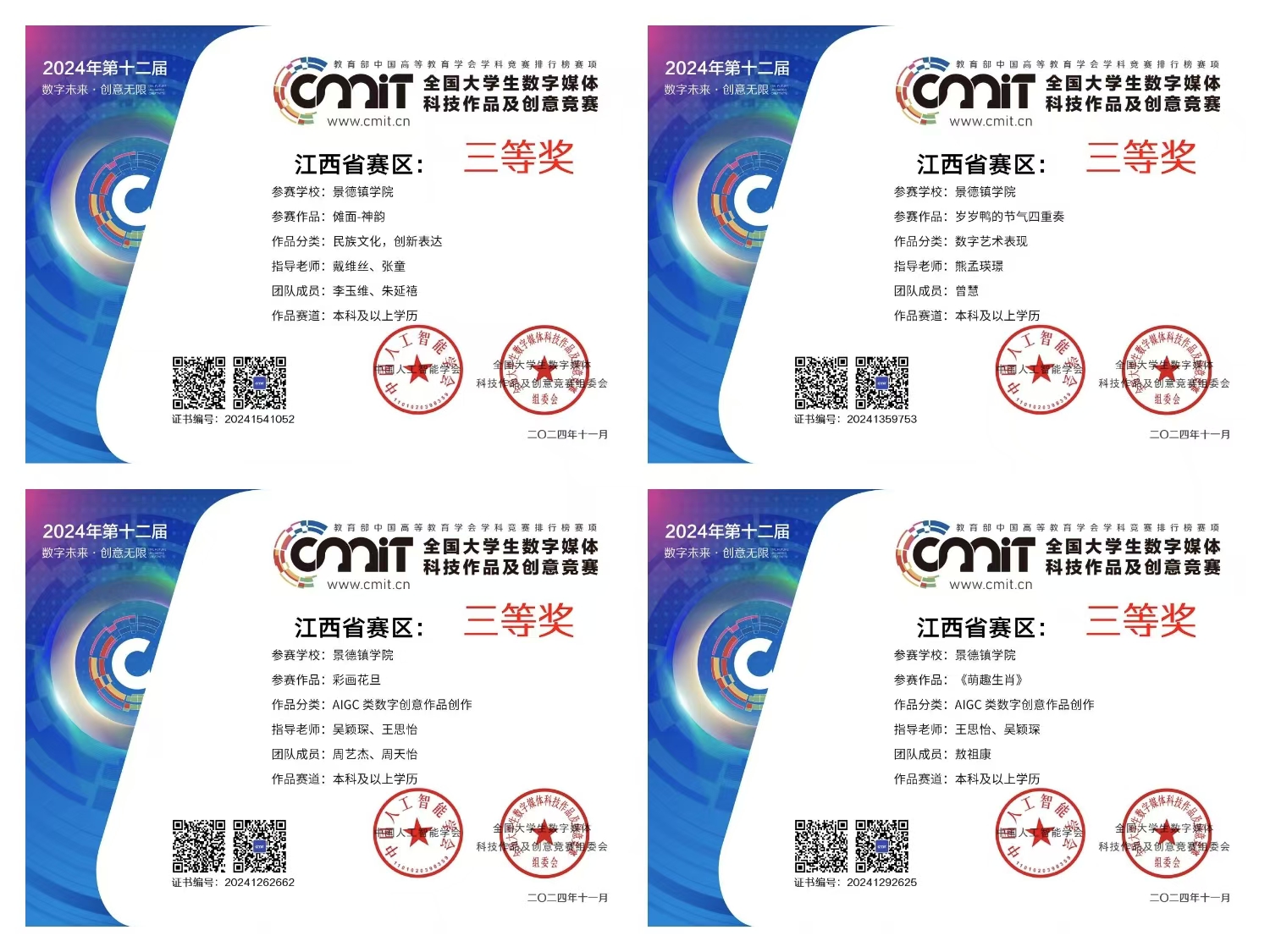 【喜报】米兰陶瓷美术与设计艺术学院师生在“第12届全国大学生数字媒体科技作品及创意”中获国奖4项、省奖4项