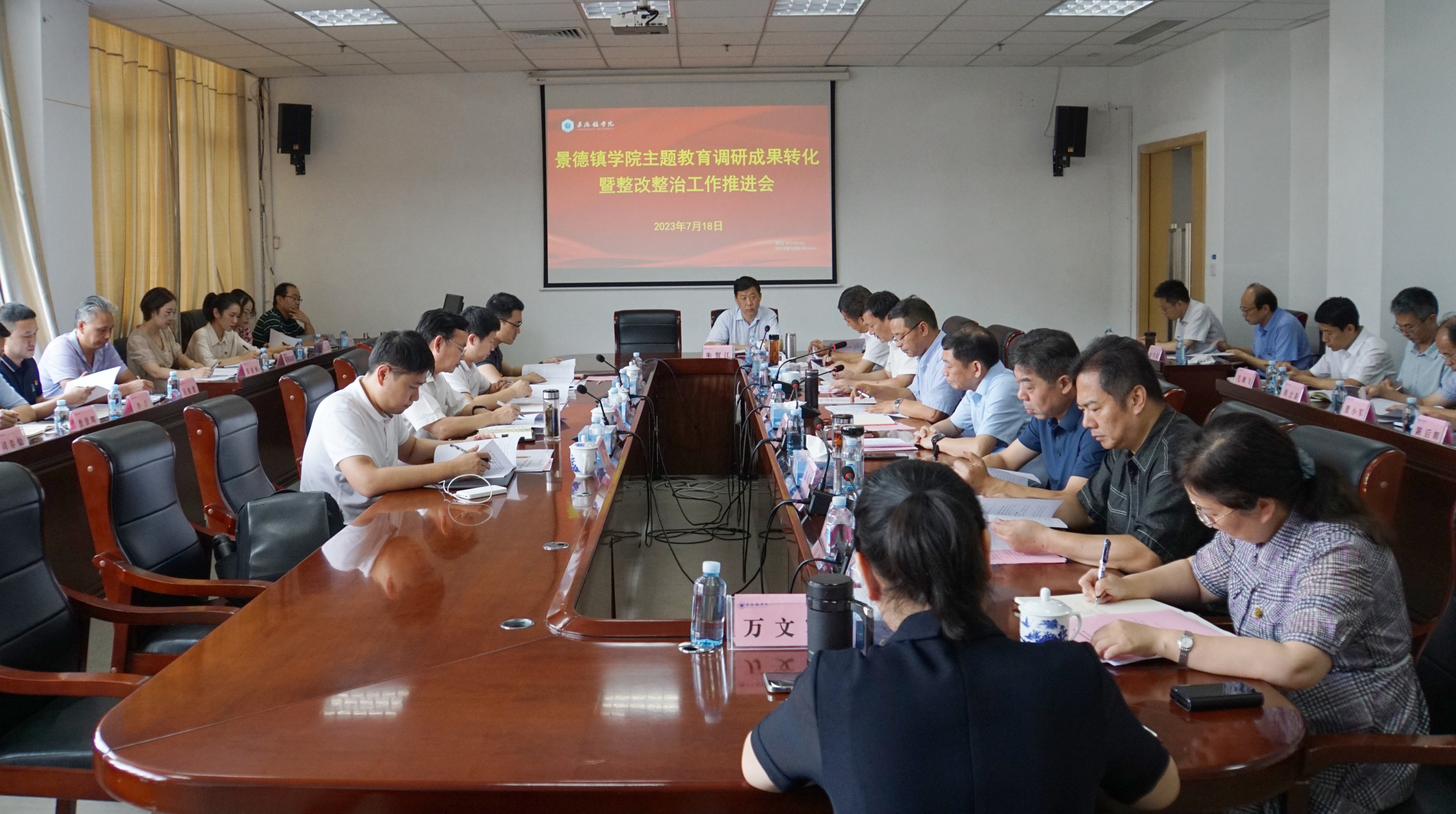 人事处、教务处、学生工作处、教学质量监控与评估处、国际交流与教育学院、产教融合中心负责人、各二级学院党委(党总支)主要负责人和校主题教育办公室相关成员参加会议。